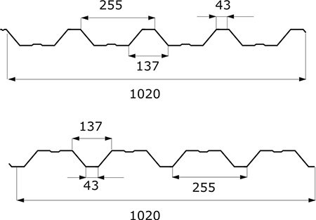 Trapézový plech T-55 profil na střechu (s odvodňovacím žlábkem) nebo na fasádu. Používá se také jako konstrukční plech a dále na stropy a bednění vyplněná betonem. Jeho odolnost umožňuje zvýšit vzdálenost mezi opěrnými body při zachování požadovaných parametrů přenosu zatížení větrem a sněhem. Je vyráběn v povrchových úpravách dle přiloženého vzorkovníku.